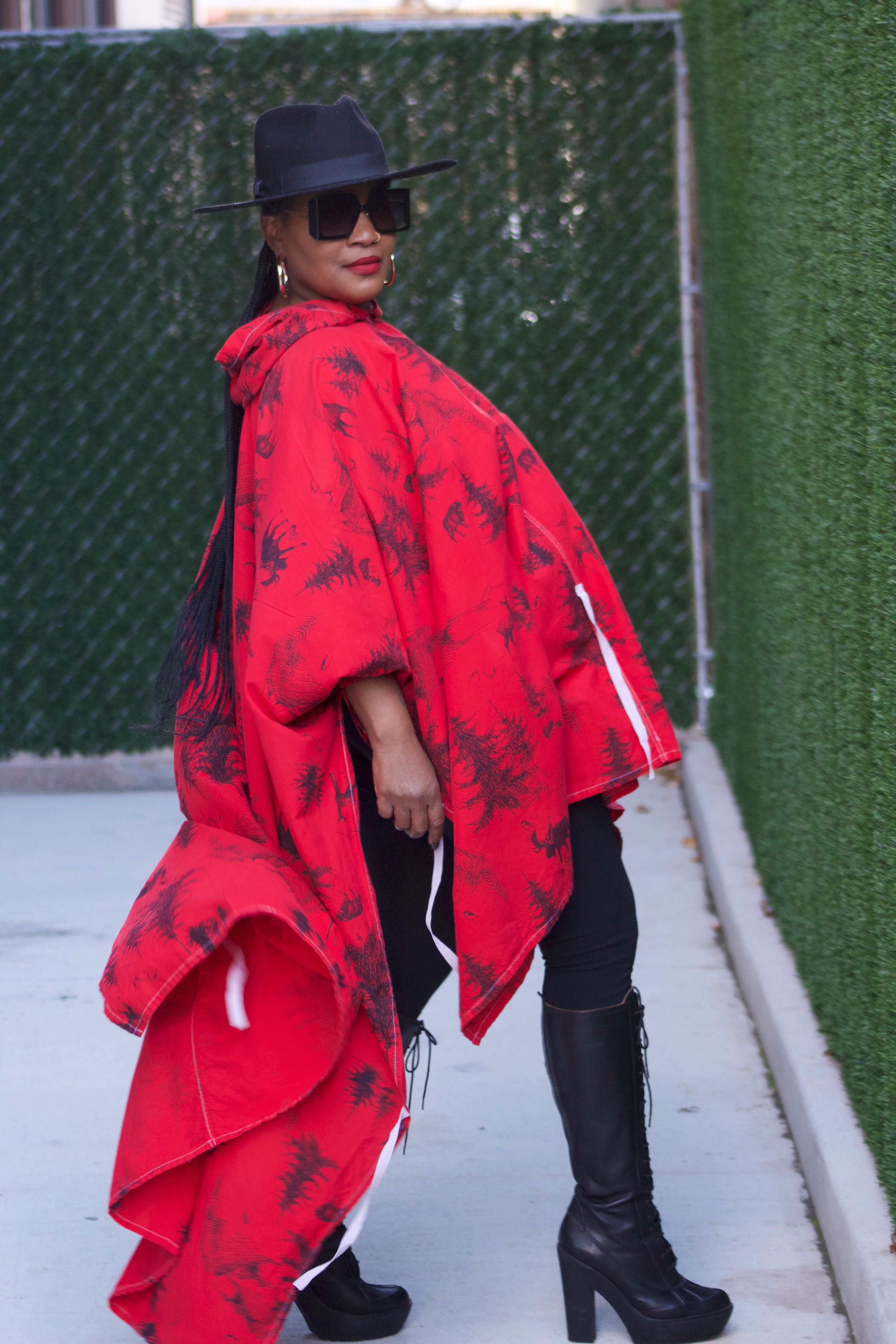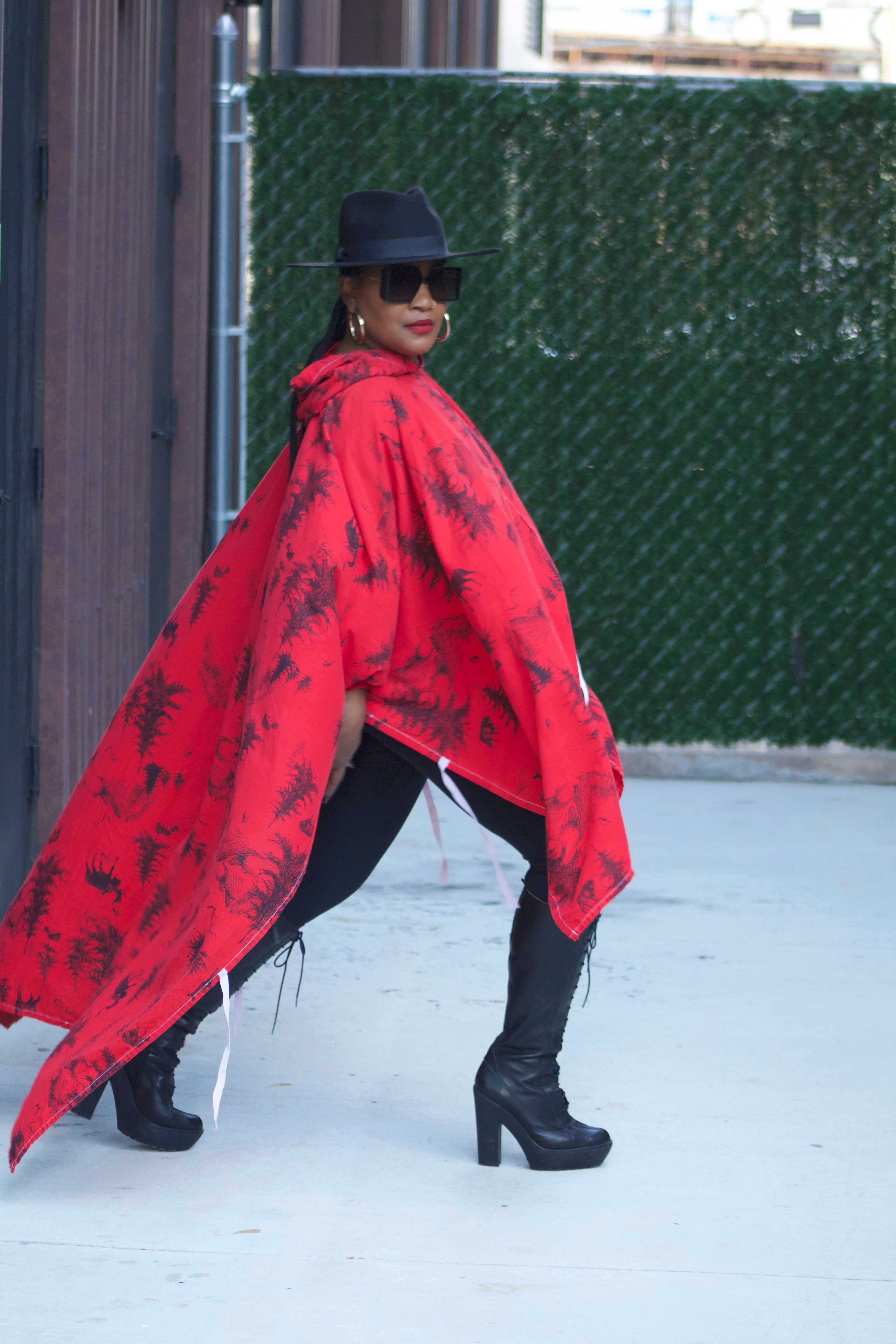 Poncho - Red & Black